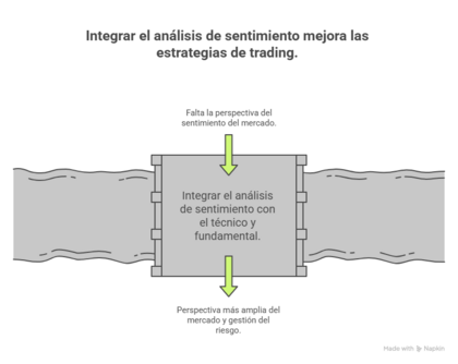 Integrar el análisis de sentimiento en trading con el técnico y fundamental puede ser útil para tener una perspectiva más amplia de lo que sucede en el mercado, aplicando los siguientes aspectos: