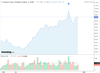 Cameco, con sede en Canadá, es uno de los mayores proveedores de uranio del mundo. Con la reactivación de plantas nucleares y el desarrollo de reactores modulares (SMR) por parte de las Big Tech, el uranio ha entrado en un nuevo ciclo alcista estructural.