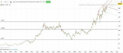 El desempeño de TSMC en los últimos siete años ha sido notable, pasando de valer poco más de 30 hasta los 220 dólares. Es decir que a pesar de las vicisitudes geopolíticas, la firma supo lidiar y encontrar soportes que le permitieron impulsar hasta los niveles actuales.