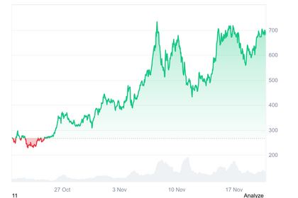 Zcash es la gran sorpresa del último trimestre de 2025. Desde octubre no para de subir y en noviembre ya acumula más de 150 % de rendimiento. Hoy cotiza sobre los 600 dólares y está presionando la barrera psicológica de los 700 dólares, nivel que, de romperse, abriría la puerta a nuevos máximos históricos. ZEC lleva meses subiendo constantemente. Fuente: CoinMarketCap.