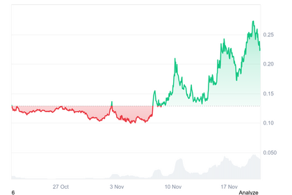 El 10 de noviembre rompió con fuerza los 0,20 dólares, dibujó un fondo redondeado perfecto y, tras corregir hasta los 0,14 dólares, volvió a la carga con más potencia.