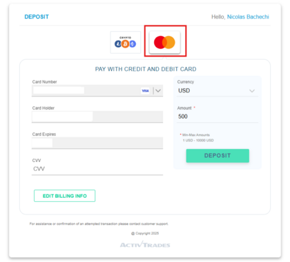 Depositar fondos en ActivTrades es un proceso directo y seguro que podés gestionar desde tu área personal. La plataforma ofrece distintos métodos de pago, desde transferencias bancarias y tarjetas hasta billeteras digitales y criptomonedas, lo que te permite elegir la opción que mejor se adapte a tu forma de operar.