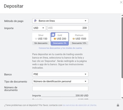 El depósito mínimo es de solo 20 USD