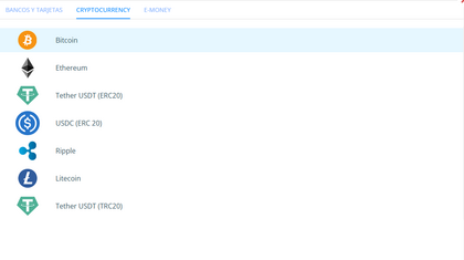 Activos disponibles en el pago con criptomonedas